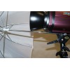 Voor gebruik van studioflitser met paraplu, wanneer de parapluhouder zich op de bevestigingsvoet bevindt. De reflector heeft geen doorvoeropening.